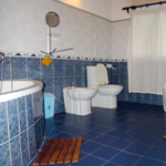 The villa has two hot-water bathrooms, one with a shower, the other with a large corner bathtub with overhead shower.